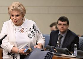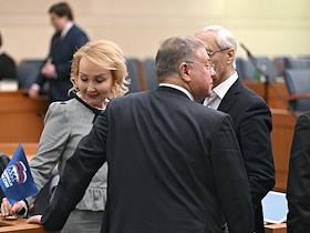 Заседание Моcковской городской думы (Мосгордумы). Уполномоченный по правам человека в городе Москве Татьяна Потяева (слева) во время заседания.