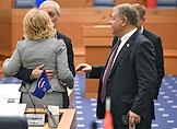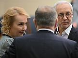 Заседание Моcковской городской думы (Мосгордумы). Депутаты Мосгордумы Степан Орлов (справа) и Лариса Картавцева (в центре) перед началом заседания.