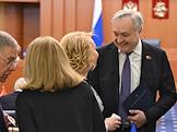 Заседание Моcковской городской думы (Мосгордумы). Председатель Московской городской думы Алексей Шапошников (в центре) перед началом заседания.