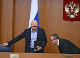 Заседание Моcковской городской думы (Мосгордумы). Депутаты Мосгордумы Валерий Головченко (слева) и Владимир Рыжков (справа) перед началом заседания.