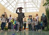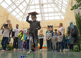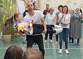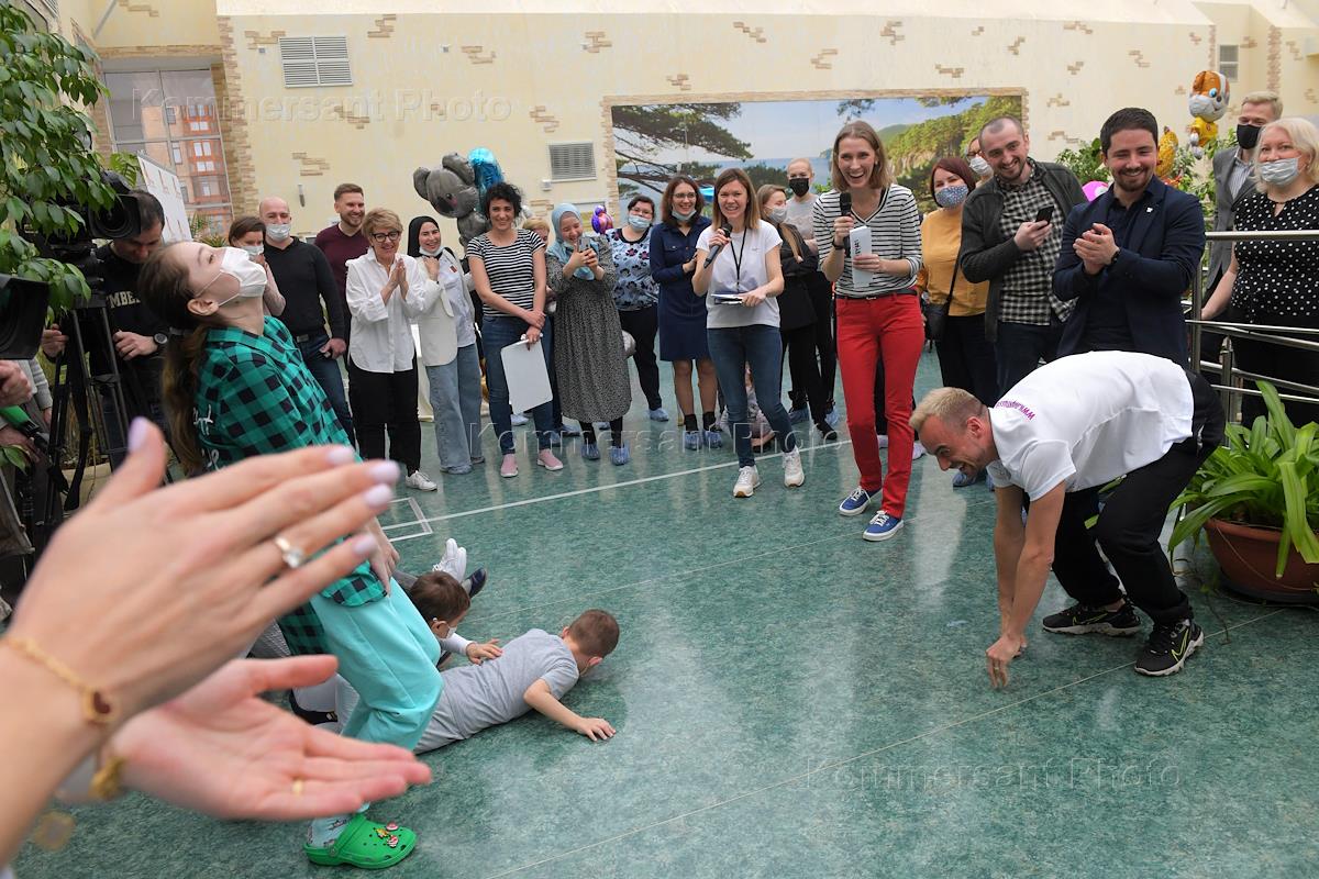 День здоровья в Национальном медицинском исследовательском центре трансплантологии и искусственных органов имени академика В.И.Шумакова. Телеведущая, гимнастка Яна Батыршина (в центре) во время мероприятий Дня здоровья.
