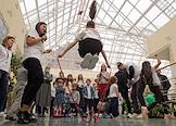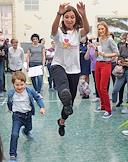 День здоровья в Национальном медицинском исследовательском центре трансплантологии и искусственных органов имени академика В.И.Шумакова. Телеведущая, гимнастка Яна Батыршина (справа) во время мероприятий Дня здоровья.
