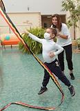 День здоровья в Национальном медицинском исследовательском центре трансплантологии и искусственных органов имени академика В.И.Шумакова. Теннисистка Елена Веснина (слева) и телеведущая, гимнастка Яна Батыршина (справа) во время мероприятий Дня здоровья.