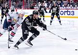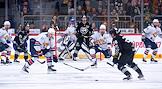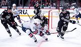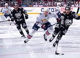 Континентальная хоккейная лига (КХЛ). Плей-офф. Финал-Восток. 1-й матч. Матч между командами "Трактор" (Челябинск) - "Металлург Мг" (Магнитогорск) на стадионе "Арена-Металлург". Игрок команды "Трактор" Лоренс Пилут (в центре) во время матча.