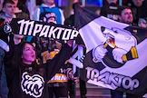 Континентальная хоккейная лига (КХЛ). Плей-офф. Финал-Восток. 1-й матч. Матч между командами "Трактор" (Челябинск) - "Металлург Мг" (Магнитогорск) на стадионе "Арена-Металлург". Болельщики команды "Трактор" на зрительской трибуне во время матча.