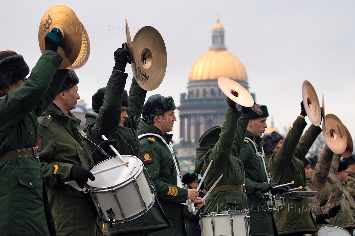 Репетиция военного оркестра Парада Победы на Дворцовой Площади.