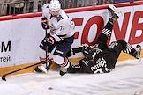 Континентальная хоккейная лига (КХЛ). Плей-офф. Финал-Восток. 4-й матч. Матч между командами "Трактор" (Челябинск) - "Металлург Мг" (Магнитогорск) на стадионе "Арена-Металлург". Игрок команды "Металлург" Карри Джош (слева) и игрок команды "Трактор" Алексей Бывальцев (справа) во время матча.
