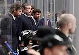 Континентальная хоккейная лига (КХЛ). Плей-офф. Финал-Восток. 4-й матч. Матч между командами "Трактор" (Челябинск) - "Металлург Мг" (Магнитогорск) на стадионе "Арена-Металлург". Главный тренер команды "Трактор" Анвар Гатиятулин (в центре) во время матча.
