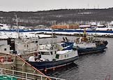 Пресс-тур на предприятия рыбопромышленного холдинга "Norebo". Жанровая фотография. Рыболовные траулеры у причала.