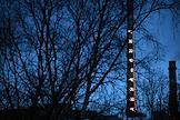 Виды Мурманска. Жанровая фотография. Архитектурная подсветка дымовой трубы мурманской ТЭЦ, расположенной на улице Шмидта, стилизованная под градусник с точными показаниями температуры воздуха.