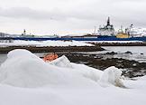 Виды Мурманска. Жанровая фотография. Дизель-электроход "Арктик Экспресс" на фоне городских домов.