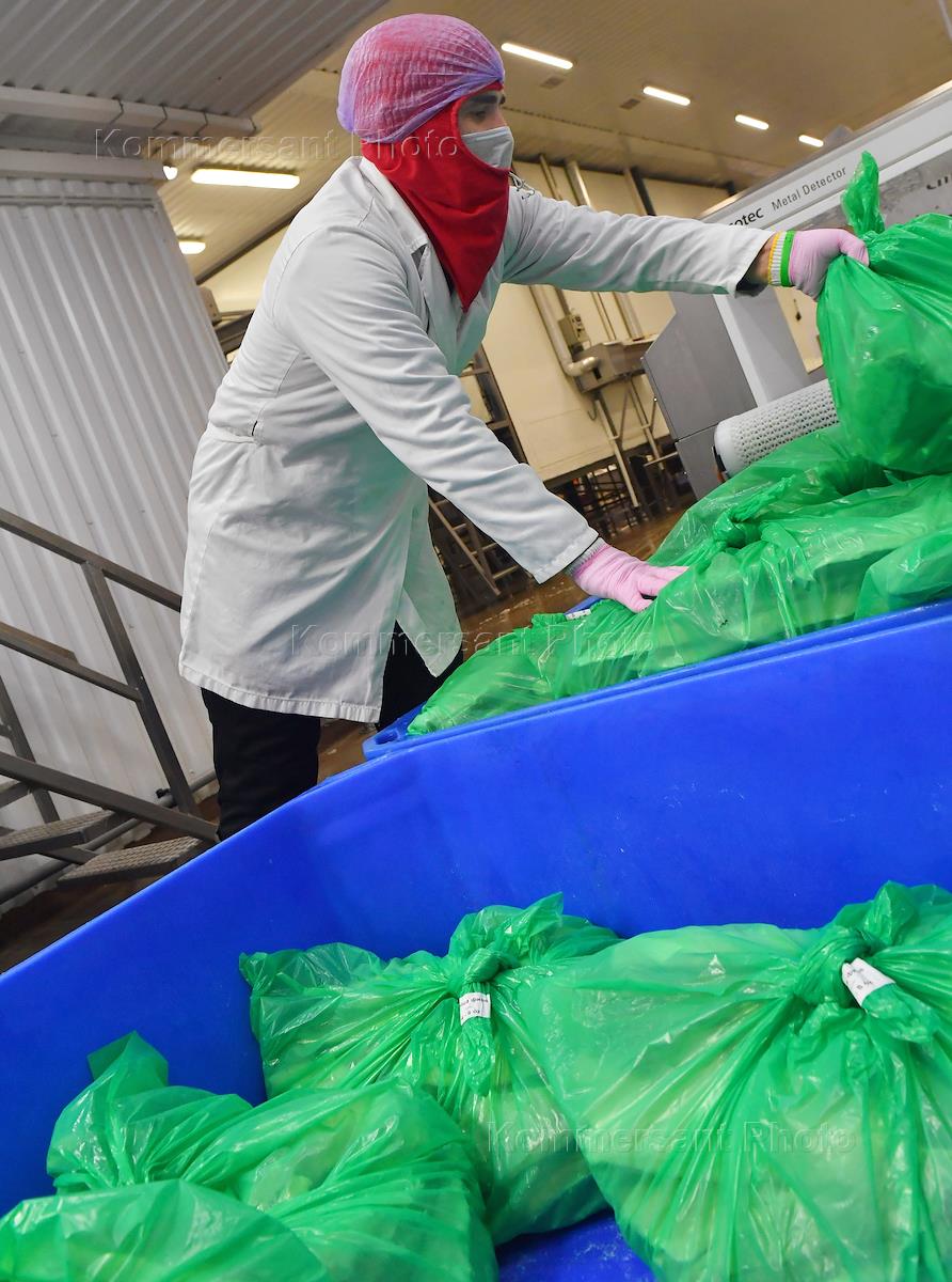 Пресс-тур на предприятия рыбопромышленного холдинга Norebo. Жанровая фотография. Работа береговой рыбоперерабатывающой фабрики Borealis. Разделочная линия фабрики.