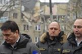 Последствия взрыва бытового газа в пятиэтажном жилом доме №4 по Центральному переулку. Губернатор Московской области Андрей Воробьев (в центре) на месте взрыва.