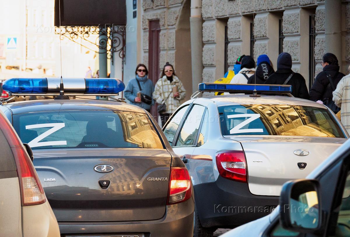 Виды Санкт-Петербурга. Жанровая фотография. Набережная реки Мойки. Автомобилb полиции с наклейкой Z.