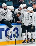 Континентальная хоккейная лига (КХЛ). Плей-офф. Финал-Восток. 2-й матч. Матч между командами "Металлург Мг" (Магнитогорск) - "Трактор" (Челябинск) на стадионе "Арена-Металлург". Исполняющий обязанности главного тренера команды "Трактор" Алексей Тертышный (в центре) во время матча.