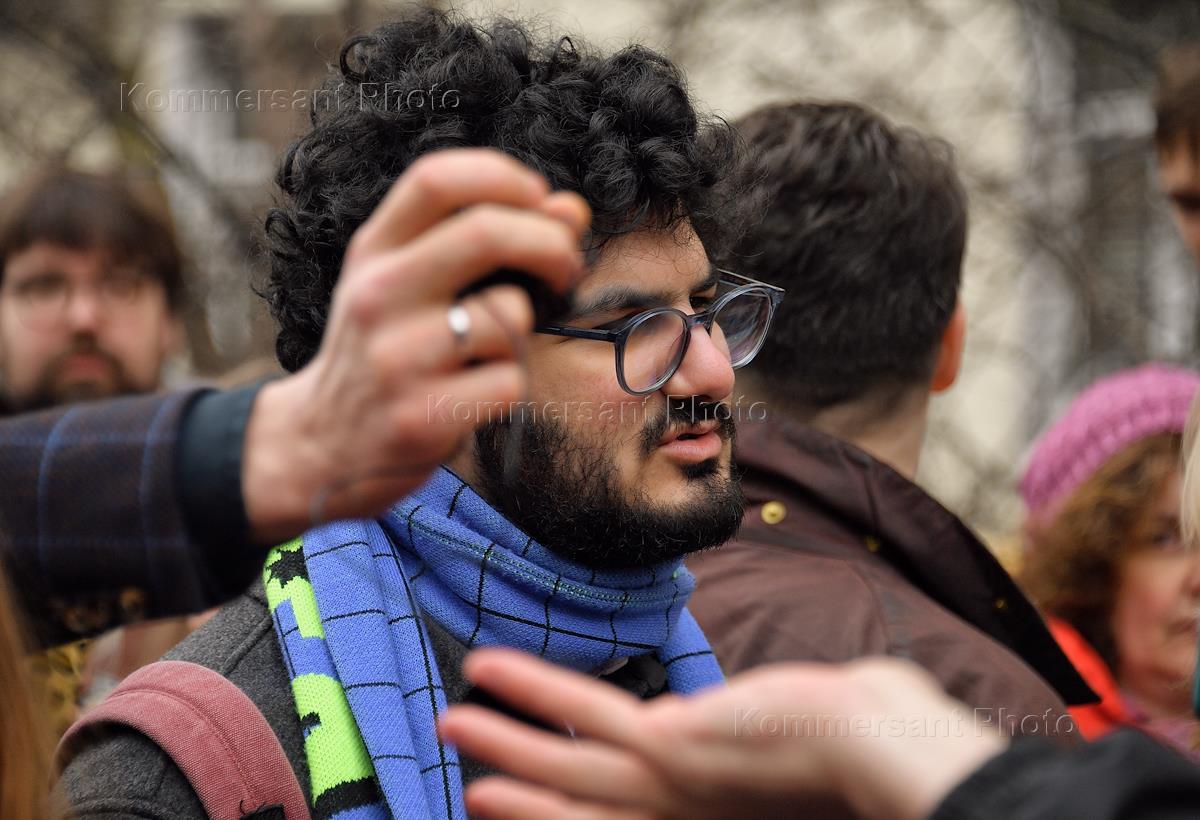 Оглашение приговора по уголовному делу в отношении редакторов студенческого издания Doxa Армена Арамяна, Наташи Тышкевич, Владимира Метелкина и Аллы Гутниковой в Дорогомиловском районном суде. Главный редактор студенческого журнала DOXA Армен Арамян перед началом заседания суда.