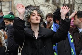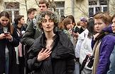 Announcement of the verdict in the criminal case against the editors of the student publication Doxa Armen Aramyan, Natasha Tyshkevich, Vladimir Metelkin and Alla Gutnikova at the trial precinct of the justice of the peace No. 208 of the Dorogomilovo district. Alla Gutnikova (center), editor of the student magazine DOXA, before the court session.