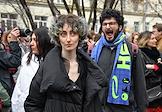 Announcement of the verdict in the criminal case against the editors of the student publication Doxa Armen Aramyan, Natasha Tyshkevich, Vladimir Metelkin and Alla Gutnikova in the Dorogomilovsky District Court. Chief editor of the student magazine DOXA Armen Aramyan (center) and editor of the student magazine DOXA Alla Gutnikova (left) before the court session.