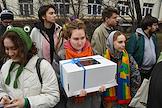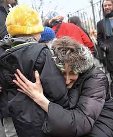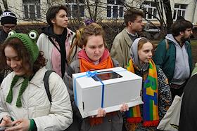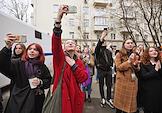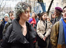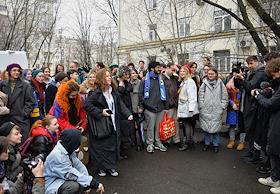 Announcement of the verdict in the criminal case against the editors of the student publication Doxa Armen Aramyan, Natasha Tyshkevich, Vladimir Metelkin and Alla Gutnikova at the trial precinct of the justice of the peace No. 208 of the Dorogomilovo district. Situation near the courtroom.