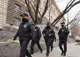Announcement of the verdict in the criminal case against the editors of the student publication Doxa Armen Aramyan, Natasha Tyshkevich, Vladimir Metelkin and Alla Gutnikova in the Dorogomilovsky District Court. Police officers at the courthouse.