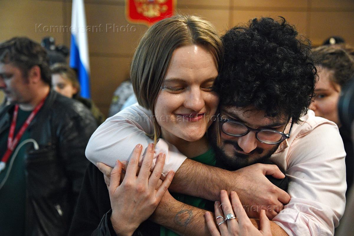 Оглашение приговора по уголовному делу в отношении редакторов студенческого издания Doxa Армена Арамяна, Наташи Тышкевич, Владимира Метелкина и Аллы Гутниковой в Дорогомиловском районном суде.