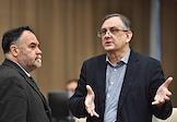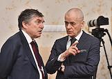 Заседание Президиума Российской академии наук (РАН). Заместитель президента Российской академии образования Геннадий Онищенко (справа) и заместитель президента РАН, руководитель Информационно-аналитического Центра "Наука" РАН Владимир Иванов (слева) перед началом заседания.