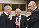 Заседание Президиума Российской академии наук (РАН). Слева направо: вице-президент РАН Юрий Балега, академик РАН, научный руководитель ФГБУН "Федеральный исследовательский центр питания, биотехнологии и безопасности пищи" Виктор Тутельян и академик РАН Владимир Стародубов во время заседания.