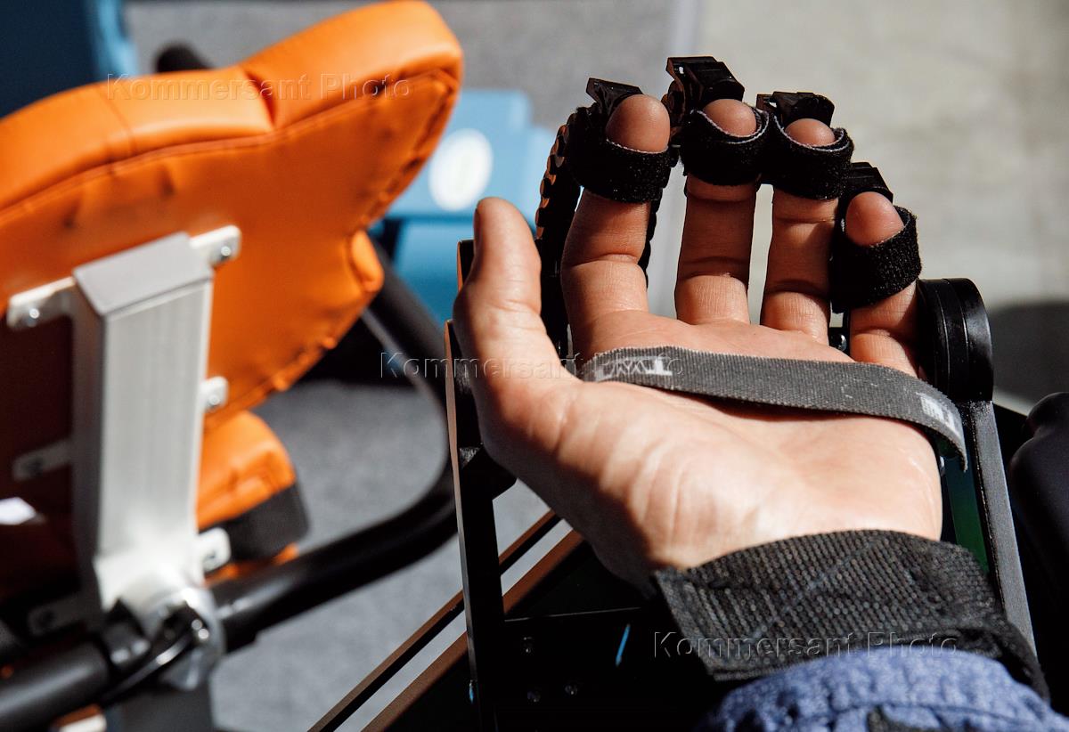 The opening ceremony of the exhibition-forum "Healthcare of the Urals - 2022" at the site of the IEC "Ekaterinburg-EXPO". A device for the rehabilitation of the hands after an injury.