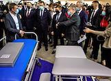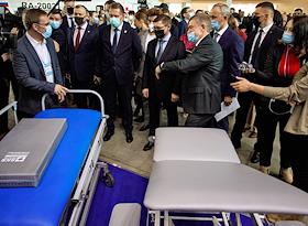 Церемония открытия выставки-форума "Здравоохранение Урала – 2022" на площадке МВЦ "Екатеринбург-ЭКСПО". Прибор для реабилитации кистей рук после травмы.