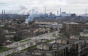 Проведение специальной военной операции Вооруженных Сил России на Украине. Ситуация в Мариуполе. Вид на территорию металлургического комбината "Азовсталь".