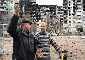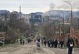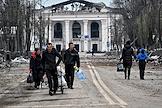 Проведение специальной военной операции Вооруженных Сил России на Украине. Ситуация в Мариуполе. Жители на одной из улиц в Правобережном районе города.