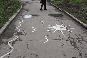 Проведение специальной военной операции Вооруженных Сил России на Украине. Ситуация в Мариуполе. Рисунок на асфальте.