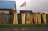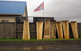 Проведение специальной военной операции Вооруженных Сил России на Украине. Ситуация в Мариуполе. Деревянные гробы вдоль забора.