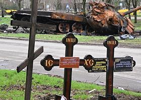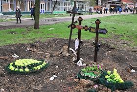 Проведение специальной военной операции Вооруженных Сил России на Украине. Ситуация в Мариуполе. Могилы на одной из улиц города.