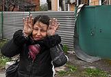 Проведение специальной военной операции Вооруженных Сил России на Украине. Ситуация в Мариуполе. Женщина на одной из улиц в Правобережном районе города.