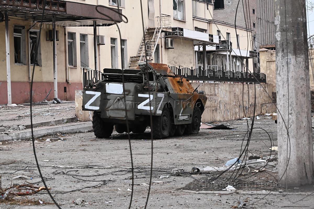 Проведение специальной военной операции Вооруженных Сил России на Украине. Поврежденная военная техника на улице в Кальмиусском районе.
