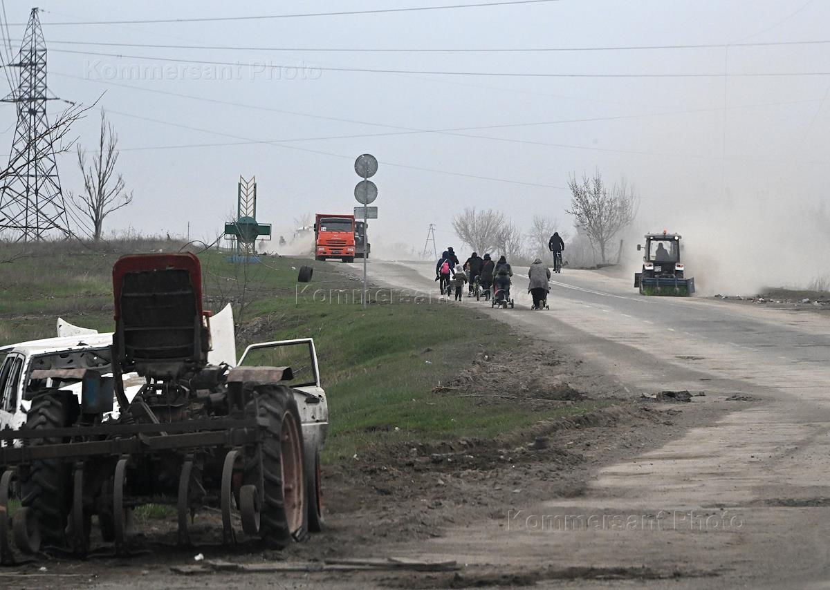 Проведение специальной военной операции Вооруженных Сил России на Украине. Местные жители на обочине дороги.