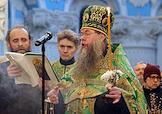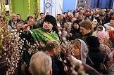 Празднование Входа Господня в Иерусалим (Вербное воскресение) в Воскресенском соборе Свято-Воскресенского Ново-Иерусалимского ставропигиального мужского монастыря. Наместник Воскресенского Ново-Иерусалимского ставропигиального мужского монастыря архимандрит Феофилакт (Безукладников) во время богослужения.
