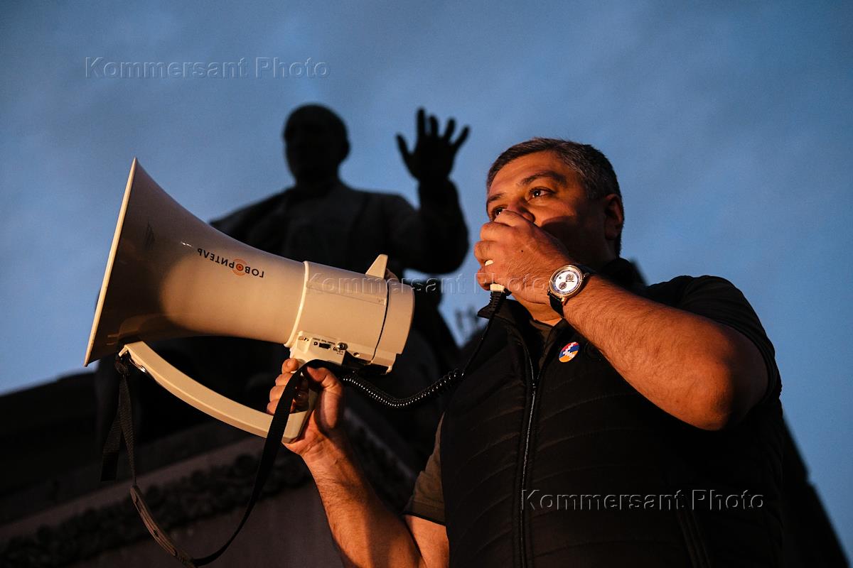 Митинг-шествие оппозиции против заявления премьер-министра Никола Пашиняна о возможности "снизить планку" требований по статусу Нагорного Карабаха на площади Свободы. Депутат Национального Собрания Республики Армения Артур Ванецян во время митинга.