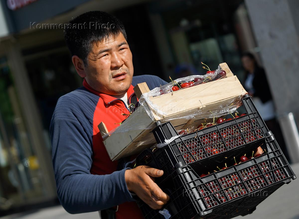 Views of Moscow. Genre photography. The man is sitting on the stairs.