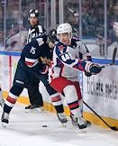 Континентальная хоккейная лига (КХЛ). Плей-офф. Финал Чемпионата. 2-й матч. Матч между командами "Металлург Мг" (Магнитогорск) - ЦСКА (Москва) на стадионе "Арена-Металлург". Игрок команды ЦСКА Сергей Андронов (слева) во время матча.
