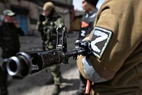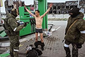 Проведение специальной военной операции Вооруженных Сил России на Украине. Бойцы спецназа ДНР на автозаправочной станции досматривает и допрашивает человека, замеченного и задержанного с армейским рюкзаком. Его проверяют на наличие татуировок, шрамов, синяков на плечах и коленях. Требуют ответить, служил ли он в армии и откуда у него армейский рюкзак.
