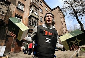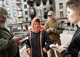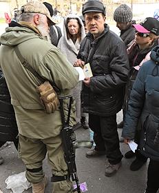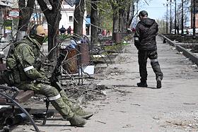 Проведение специальной военной операции Вооруженных Сил России на Украине. Ситуация в Мариуполе. Проверка документов у местных жителей.