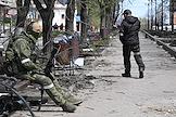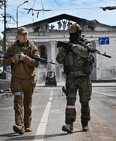 Проведение специальной военной операции Вооруженных Сил России на Украине. Ситуация в Мариуполе. Бойцы спецназа ДНР во время патрулирования улиц города.