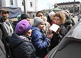 Проведение специальной военной операции Вооруженных Сил России на Украине. Ситуация в Мариуполе. Раздача гуманитарной помощи местным жителям на Никопольском проспекте участниками гражданской волонтерской инициативы "Тыл-22".