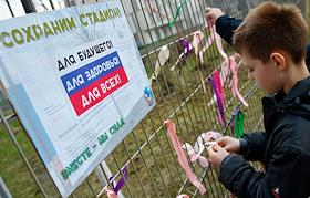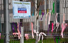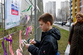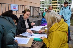 Акция жителей Западного Дегунино против сноса стадиона школы № 2098 на Базовской улице. Сбор подписей президенту России Владимиру Путину против сноса стадиона.