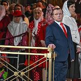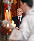 Праздничное Пасхальное богослужение в кафедральном соборном храме Христа Спасителя. Президент России Владимир Путин во время богослужения.
