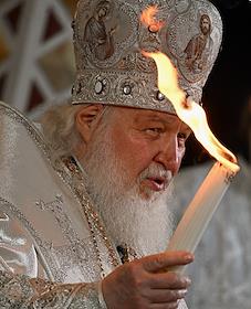 Праздничное Пасхальное богослужение в кафедральном соборном храме Христа Спасителя. Патриарх Московский и всея Руси Кирилл во время богослужения.