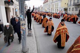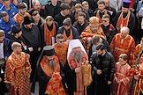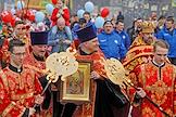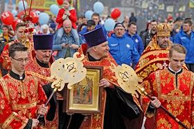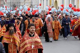 Праздничный пасхальный крестный ход от Свято-Троицкого собора до Храма-на-Крови. Священнослужители во время крестного хода.