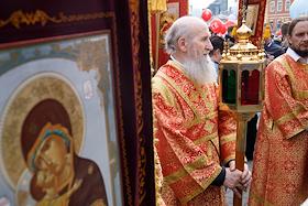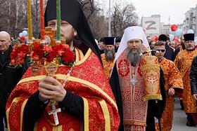 Праздничный пасхальный крестный ход от Свято-Троицкого собора до Храма-на-Крови. Митрополит Екатеринбургский и Верхотурский Евгений (слева) во время крестного хода.